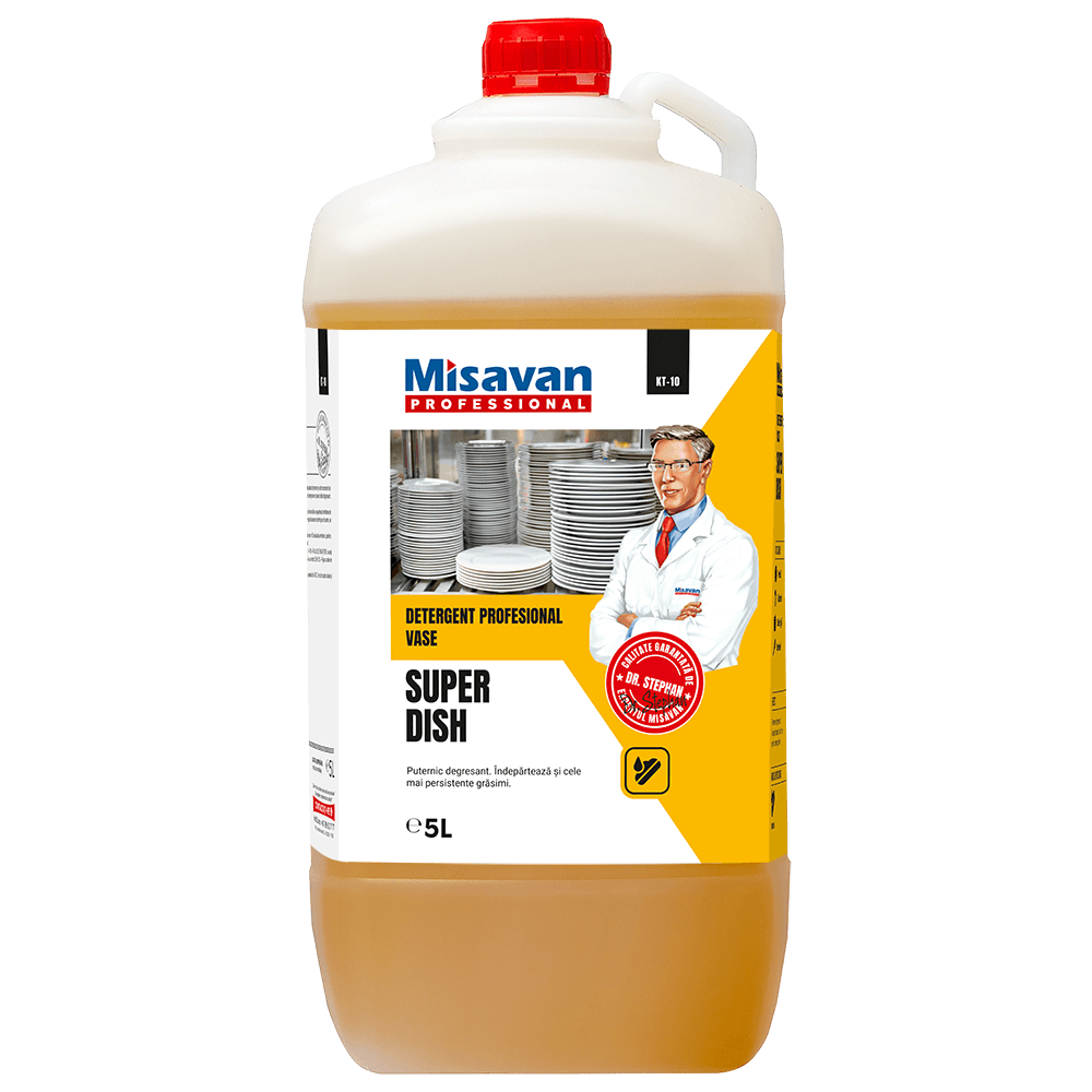Dr. Stean Super Dish este un detergent profesional super concentrat pentru curatarea si degresarea vaselor.